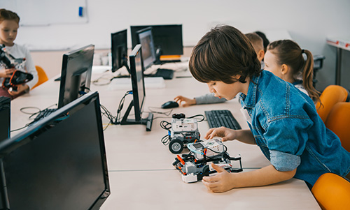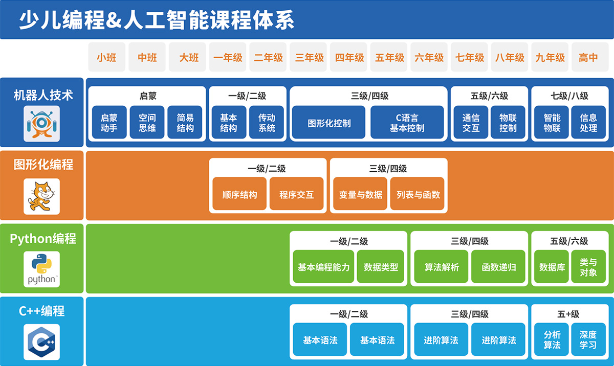 A3:我們的課程分為4個(gè)科目,分別是機(jī)器人技術(shù)、Scratch圖形化編程,python編程、C++編程,機(jī)器人是從3歲就可以開(kāi)始學(xué)習(xí),圖形化編程需要到一年級(jí),因?yàn)楹⒆右R(shí)字。python和C++需要到三年級(jí)以上才能開(kāi)始學(xué)。